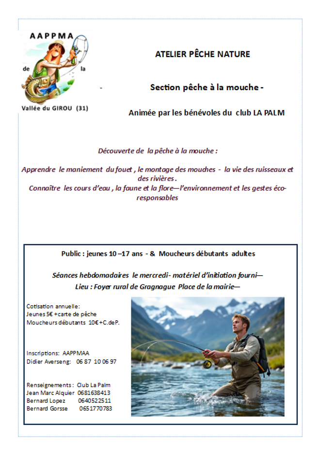 L’appma de la vallée du Girou ouvre un atelier pêche nature qui propose une initiation à la pêche à la mouche .